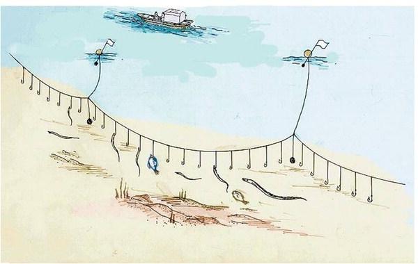 - 배에서 놓친그물은 혼자 바다를 떠돌며 물고기가 걸리면 가라앉아 다른 물고기의 먹이가 되고